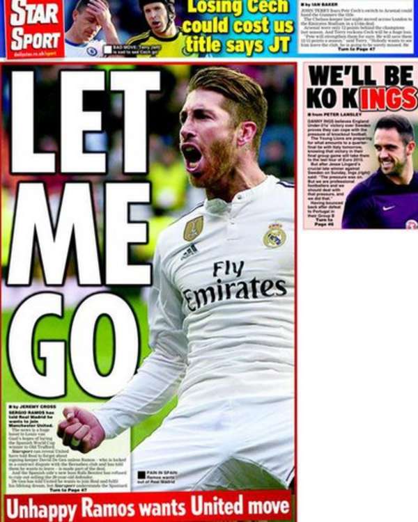 Manchester United are ready to spend £150m on new players, including Ajax goalkeeper Jasper Cillessen, 26, Real Madrid defender Sergio Ramos, 29, Bayern Munich midfielder Bastian Schweinsteiger, 30, and Real Madrid forward Karim Benzema, 27. (Daily Mirror)